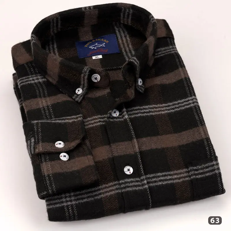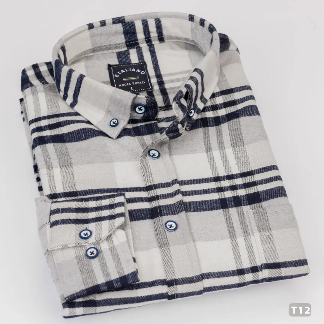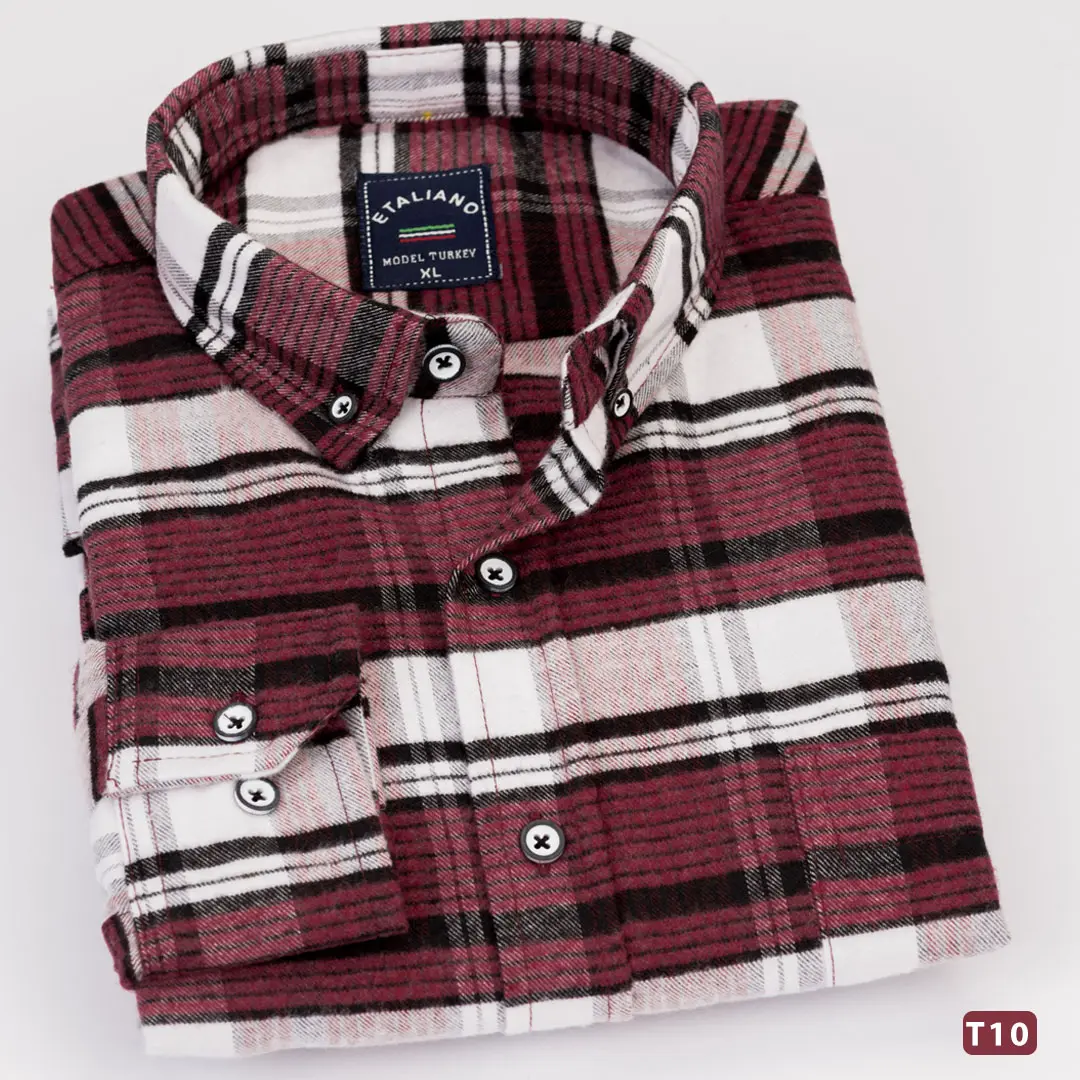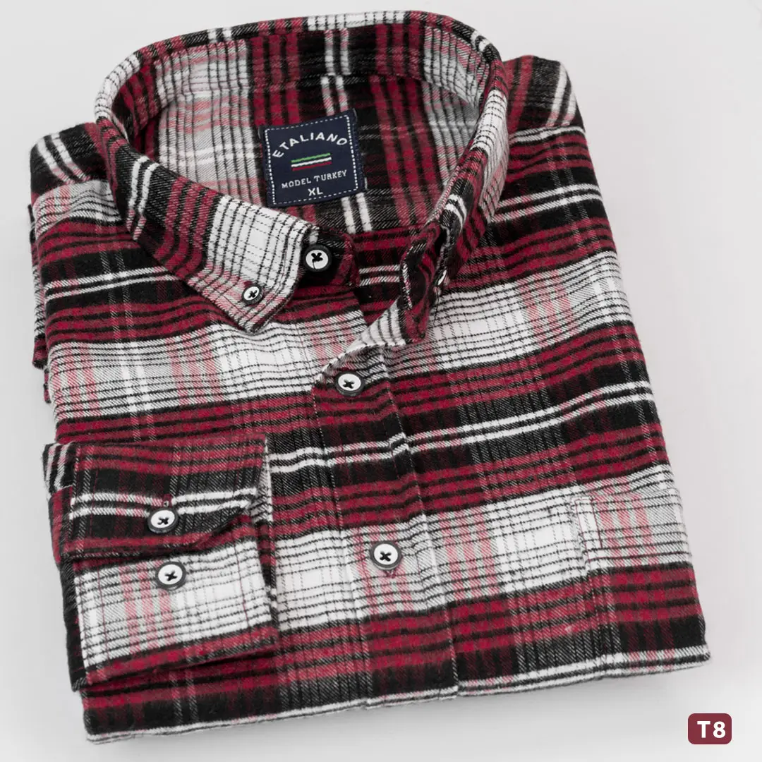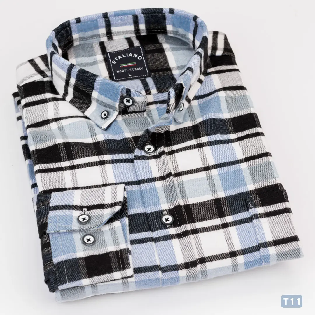عزز أناقتك الشتوية بموديل ST99، مع قميص جوخ شتوي المصمم بخامة جوخ كثيفة توفر عزلًا حراريًا ممتازًا. يتميز بنقشة كاروهات كلاسيكية وجيب صدري عملي، مما يجعله القطعة المثالية لمن يبحث عن مظهر “شيك” ومنظم في الأجواء الباردة