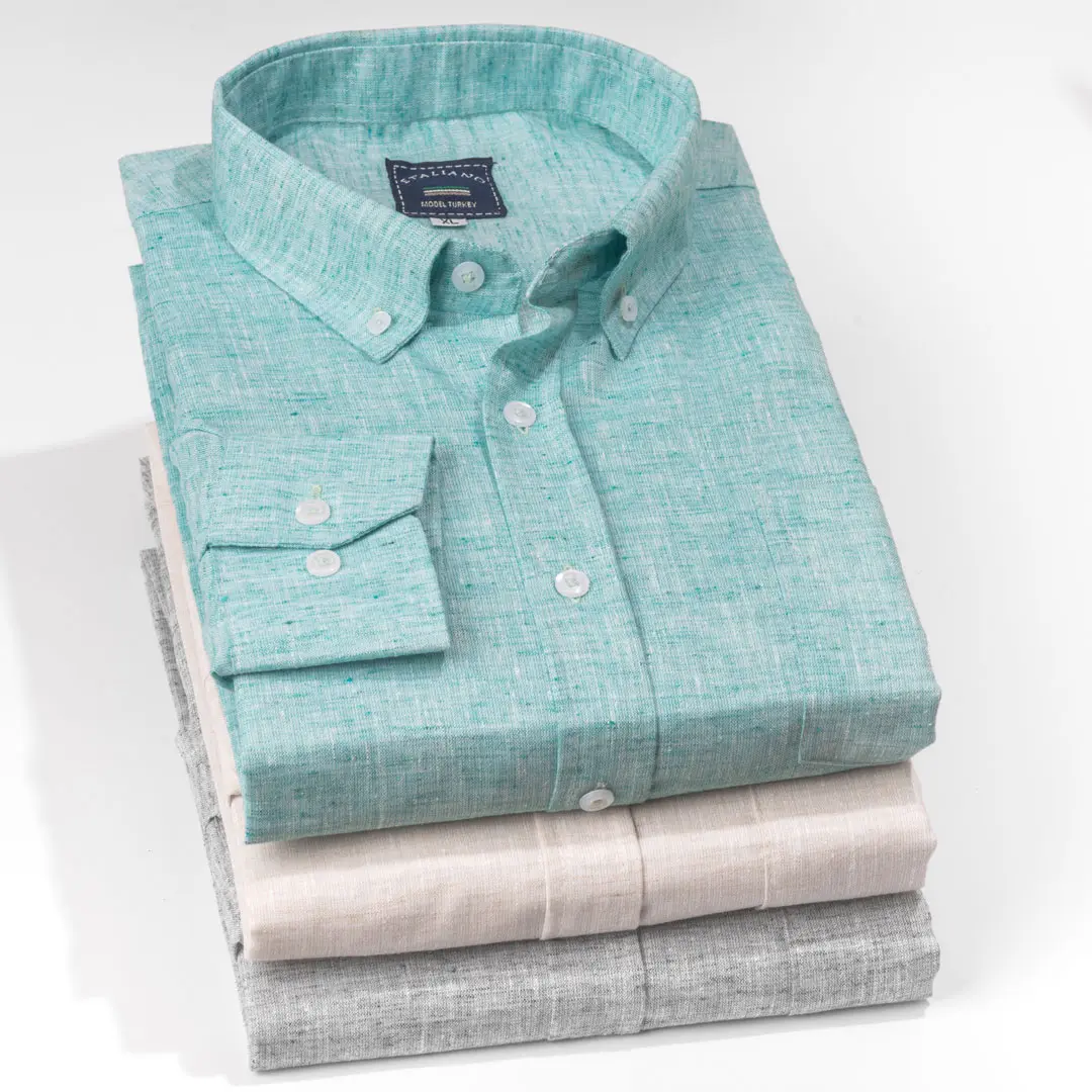 قميص كتان ساده كلاسيكي ب7 الوانيمنحك مظهرًا غاية في الرقي والبساطة. يتميز بخامة باردة على الجسم وألوان عصرية تم اختيارها بعناية لتناسب خروجاتك الصباحية والمسائية.