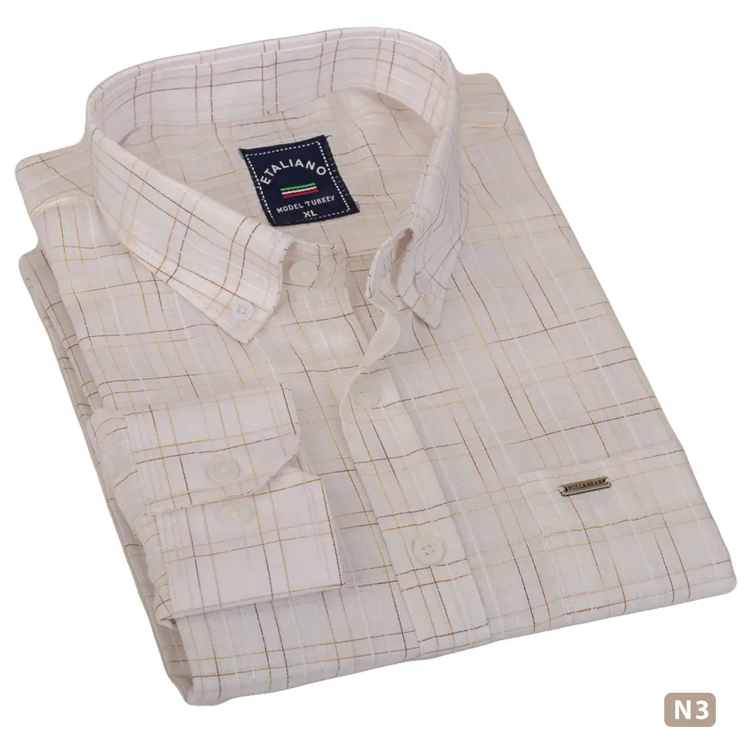 خامة طبيعية: قميص مصنوع من أجود أنواع الكتان الذي يسمح بمرور الهواء، مما يجعله مثاليًا للأجواء الحارة.