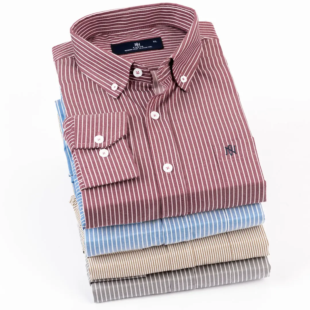 قميص مقلم اكسفورد بأكمام طويلة يتميز بخطوط طولية دقيقة تمنحك إطلالة أكثر تناسقاً ورقي. مصنوع بالكامل من القطن عالي الجودة لضمان ملمس ناعم على البشرة وتهوية مثالية طوال العام.