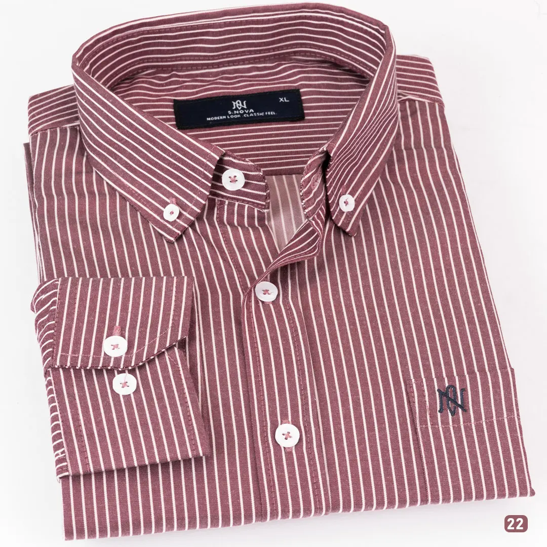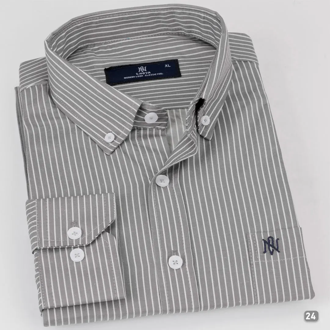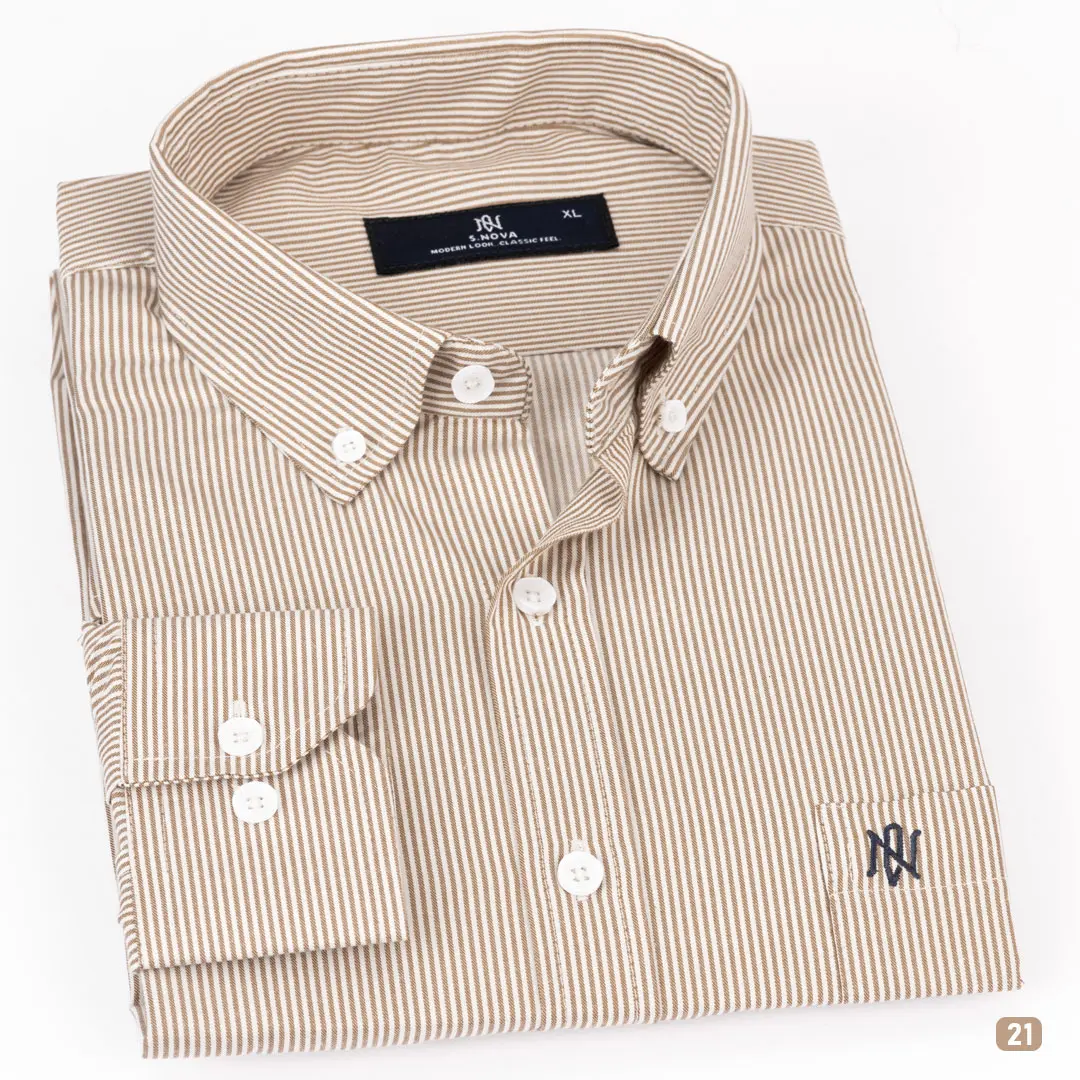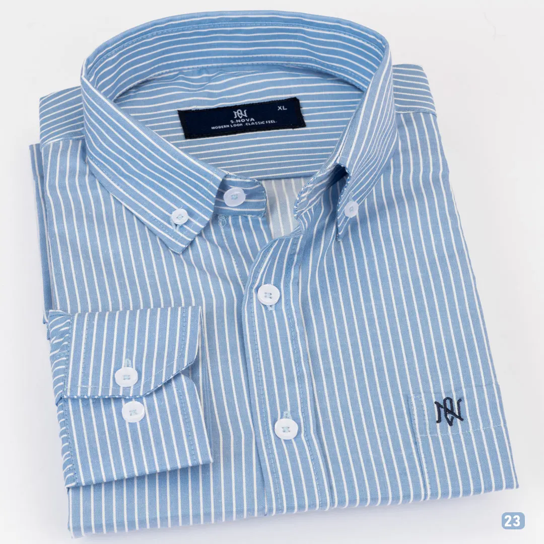 تصميم كلاسيكي متقن: يتميز القميص بخطوط طولية دقيقة تبرز أناقة الرجل، مع ياقة مدعمة للحفاظ على شكلها المفرود طوال فترة الارتداء.